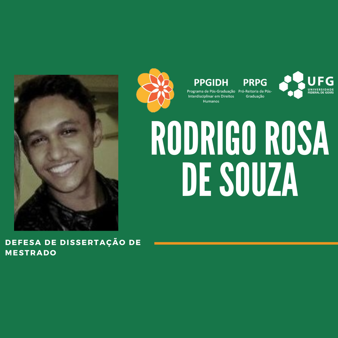 O Programa de Pós-graduação Interdisciplinar em Direitos Humanos (PPGIDH) orgulhosamente convida a comunidade acadêmica e externa à participação na defesa da dissertação de mestrado do PPGIDH de Rodrigo Rosa de Souza, orientado pela Profa. Dra. Edwiges Conceição Carvalho Corrêa, que presidirá a sessão, e coorientado pela profa. Dra. Maurides Batista Macêdo Filha com a pesquisa intitulada: